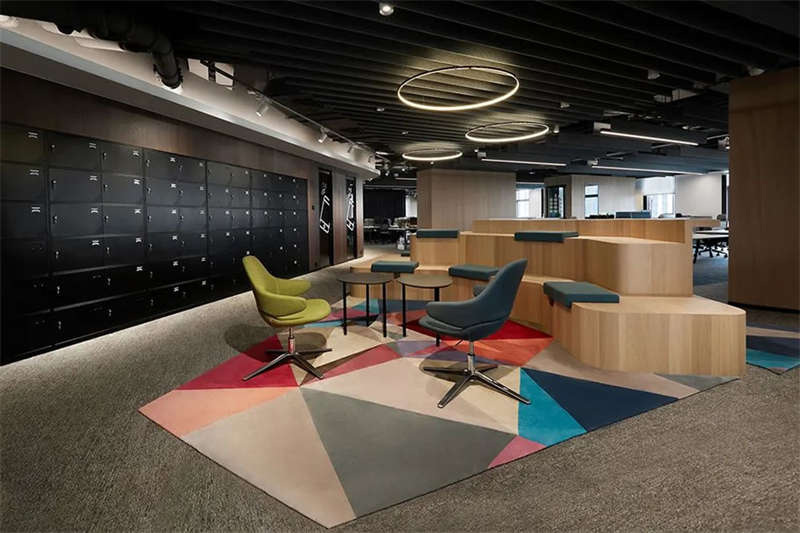 在空間規(guī)劃設計上,進行了動靜分區(qū),并打破了原有的動線,路線上進行了延伸、切角設計。在規(guī)劃各個功能空間中,充分考慮到建筑外光線與景觀的因素,將最好的光線位置留作員工咖啡交流及健身區(qū),將最好的視野區(qū)域作為總部接待大會議室。充分利用自然光,向員工傳遞正能量,其中亮點是每一個部門之間都設計了開放或半通透的多功能交流區(qū)域。讓員工參與互動活動、討論或組織公司活動,這種輔助辦公空間充足的情況下,有助于緩解員工工作中的所有壓力,幫助他們度過閑暇時光。