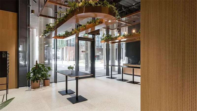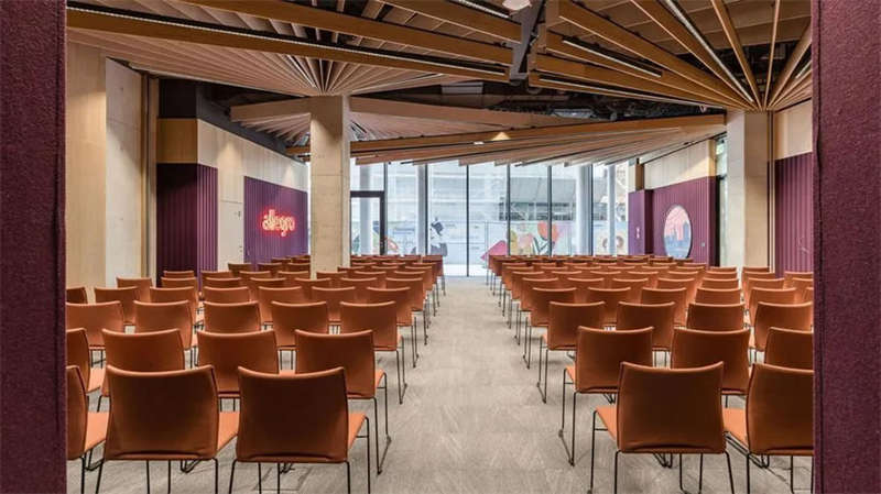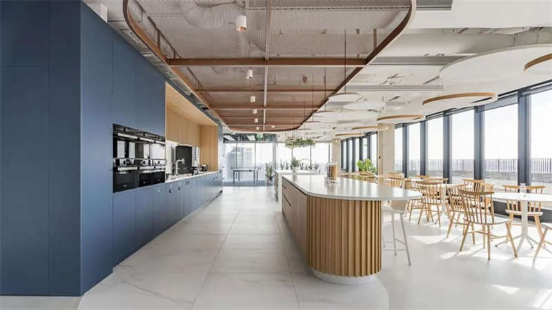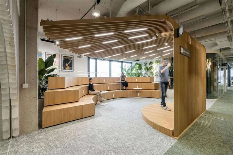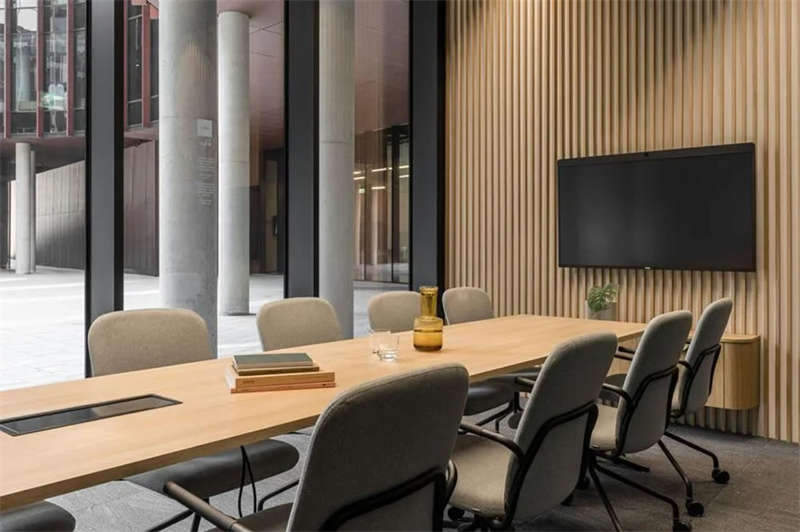 辦公室選擇了電動可調(diào)的升降辦公桌,以滿足員工個性化的需求。為了改善工作區(qū)域的聲學(xué)效果,在工作站之間和燈具上安裝了聲學(xué)板,并采用了大量的織物窗簾,從而減少了辦公室內(nèi)的噪音和混響。此外,在會議室配置了頂尖的IT/AV系統(tǒng),從而將辦公室工作與遠(yuǎn)程工作緊密連接;安靜的聲學(xué)工作艙則配備了智能照明和高效通風(fēng)系統(tǒng)。