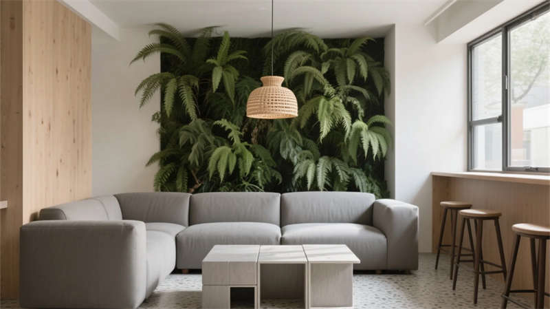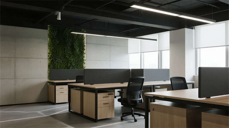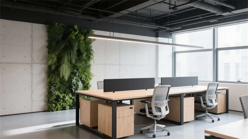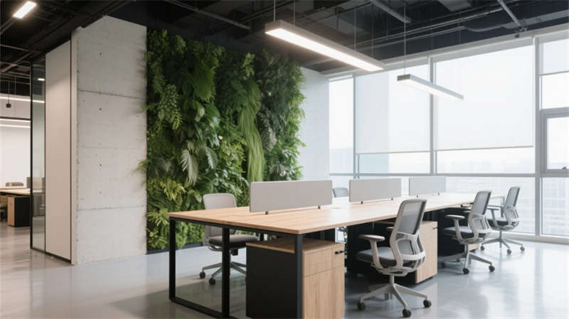 該空間以"自然共生"為脈絡(luò),將輕工業(yè)基因與生態(tài)美學深度融合。裸露結(jié)構(gòu)的天花與溫潤木元素形成張力,貫穿各區(qū)域的垂直綠植墻如同呼吸脈絡(luò),賦予嚴謹辦公場景盎然生機。