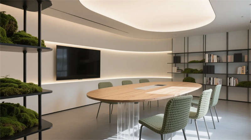 智能接待廳以流動數(shù)字藝術(shù)傳遞先鋒調(diào)性,而健康茶水間則通過有機材質(zhì)與綠植裝置,構(gòu)建松弛有度的能量補給站。整體空間拒絕刻板分割,家具模塊可隨需求自由重組,金屬線條與低飽和色彩在自然光照下沉淀出理性而溫潤的質(zhì)感。