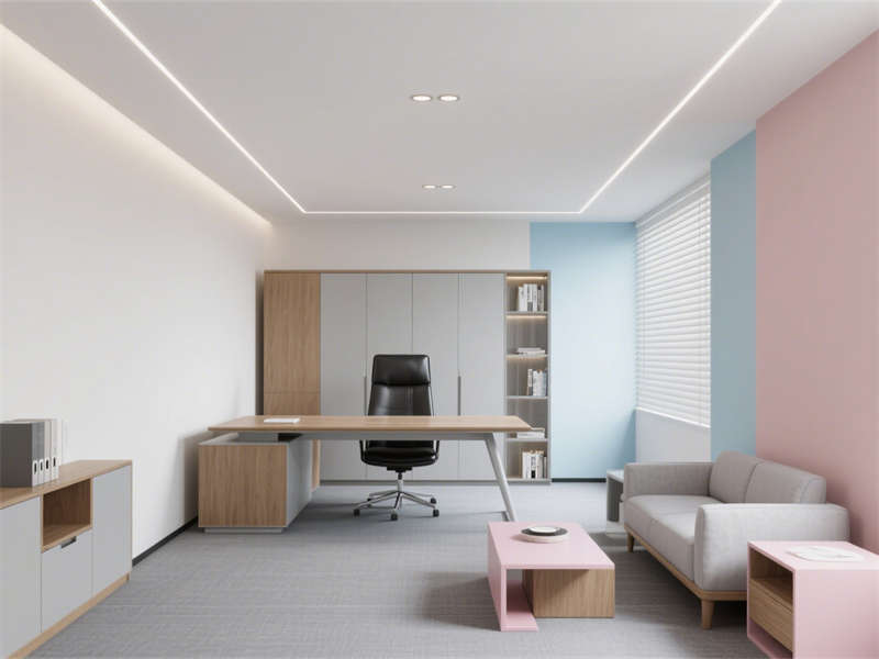 開(kāi)放辦公區(qū)注重通透感與實(shí)用性,合理的工位布局兼顧隱私與交流,原木紋桌面增添溫馨感,點(diǎn)綴的莫蘭迪色系線條讓空間更顯靈動(dòng)。經(jīng)理辦公室融合辦公與接待功能,皮質(zhì)辦公椅與木質(zhì)家具提升質(zhì)感,靠窗的休閑角落為辦公之余提供放松空間。?