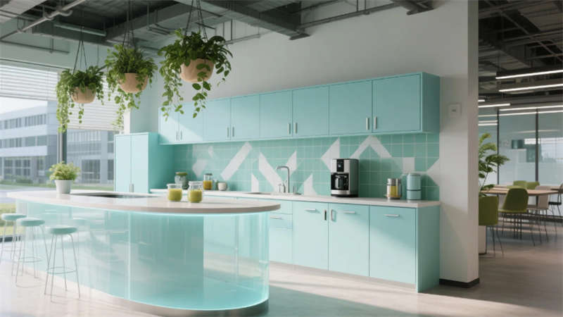 智能協(xié)作區(qū)配備環(huán)形數(shù)字屏幕與可書寫隔斷,激發(fā)團(tuán)隊(duì)創(chuàng)造力;靜音艙體與獨(dú)立辦公室滿足深度工作需求。員工休憩區(qū)通過(guò)柔和的馬卡龍色調(diào)與曲線家具,營(yíng)造松弛氛圍。接待廳的波紋金屬墻與全息投影臺(tái),在溫潤(rùn)木元素中點(diǎn)綴未來(lái)感。