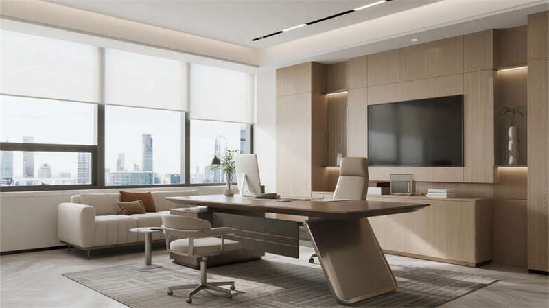 本設(shè)計(jì)以現(xiàn)代簡(jiǎn)約風(fēng)格為核心,強(qiáng)調(diào)功能與美學(xué)的和諧統(tǒng)一,為辦公環(huán)境注入靈動(dòng)活力。整體空間采用淺色調(diào)基座,搭配玻璃幕墻和金屬元素,營造通透輕盈的視覺體驗(yàn)。辦公樓外觀以幾何線條勾勒城市天際線,大廳作為樞紐,以簡(jiǎn)約接待臺(tái)和綠植迎接訪客,傳遞專業(yè)與親和力。電梯間延續(xù)寧靜氛圍,鏡面設(shè)計(jì)拓展空間感。開放辦公區(qū)注重協(xié)作,靈活布局促進(jìn)效率,自然光透過落地窗灑滿區(qū)域,綠植分隔既美觀又環(huán)保。經(jīng)理辦公室和總裁辦公室以私密性與開放性平衡,簡(jiǎn)約家具與城市景觀結(jié)合,提升工作舒適度。會(huì)議室功能性強(qiáng),玻璃墻增強(qiáng)通透感,便于創(chuàng)意碰撞。樓頂花園作為休憩綠洲,綠色屋頂與簡(jiǎn)約座椅提供放松空間,呼應(yīng)環(huán)保理念。設(shè)計(jì)融入蚌埠地域特色,汲取城市活力與自然元素,打造高效、舒適且可持續(xù)的辦公環(huán)境,體現(xiàn)現(xiàn)代工作方式的優(yōu)雅蛻變。