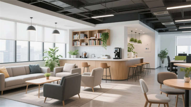 本辦公樓設(shè)計以簡約現(xiàn)代風(fēng)格為核心,打造一個統(tǒng)一而流暢的空間體驗。整體強調(diào)功能性、舒適性和美學(xué)平衡,每個功能區(qū)均采用中性色調(diào)、干凈線條和自然元素,營造出寧靜和諧的環(huán)境。大堂入口以開放通透的布局迎接用戶,結(jié)合玻璃幕墻和木質(zhì)細(xì)節(jié),傳遞專業(yè)而溫馨的第一印象。開放式辦公區(qū)通過模塊化家具和充足采光,促進(jìn)團(tuán)隊協(xié)作與效率。會議室設(shè)計注重靈活性,透明隔斷和集成設(shè)備支持高效交流。員工休息區(qū)和餐廳咖啡吧作為社交中心,提供舒適休閑空間,增強員工福祉。經(jīng)理辦公室平衡隱私與開放性,簡約家具營造專注氛圍。走廊和衛(wèi)生間延續(xù)統(tǒng)一美學(xué),注重清潔與引導(dǎo)性,確??臻g銜接自然。