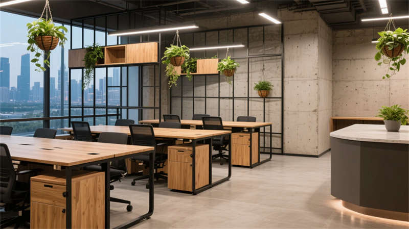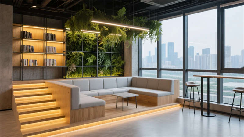 本項目以“自然滲透”與“靈活共生”為核心,將輕工業(yè)風的理性框架與生態(tài)綠意巧妙融合??臻g打破傳統(tǒng)辦公割裂感,通過綠植墻體、透光天井與流動線條,在合肥城市肌理中營造出呼吸感十足的職場綠洲。