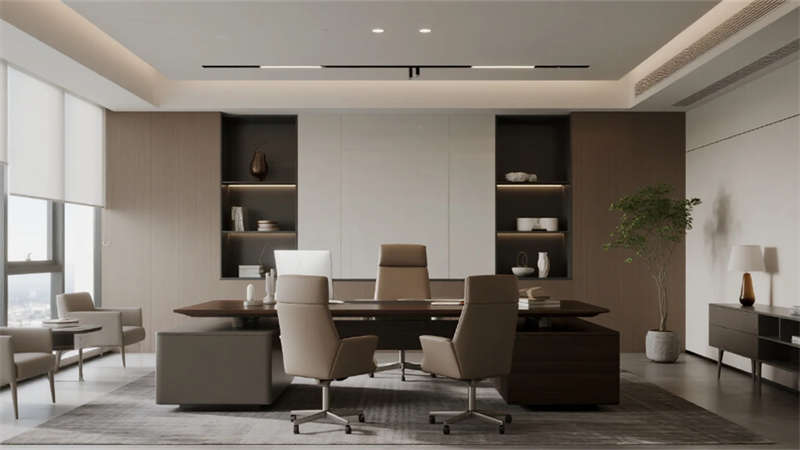 在現(xiàn)代辦公空間的設(shè)計(jì)中,該項(xiàng)目以簡約美學(xué)為核心,打造出和諧統(tǒng)一的環(huán)境。建筑外觀采用流暢線條和玻璃幕墻,不僅增強(qiáng)自然光滲透,還營造出輕盈通透的視覺感。內(nèi)部空間中,開放式辦公室布局寬敞,工作站排列有序,綠植點(diǎn)綴其中,促進(jìn)團(tuán)隊(duì)協(xié)作與創(chuàng)新氛圍。經(jīng)理辦公室則注重私密性,簡約家具和功能性區(qū)域確保高效工作,同時(shí)通過柔和色調(diào)和藝術(shù)品保持舒適感??偛棉k公室更顯優(yōu)雅,落地窗引入城市景觀,會議區(qū)與休息空間無縫銜接,強(qiáng)調(diào)領(lǐng)導(dǎo)力的從容與靈感。整體設(shè)計(jì)貫穿現(xiàn)代簡約理念,中性色彩和自然元素減少視覺雜亂,提升專注度與幸福感。項(xiàng)目位于合肥,成為當(dāng)?shù)剞k公環(huán)境的典范,融合城市特色與可持續(xù)思維,打造出既實(shí)用又具美感的理想工作場所。