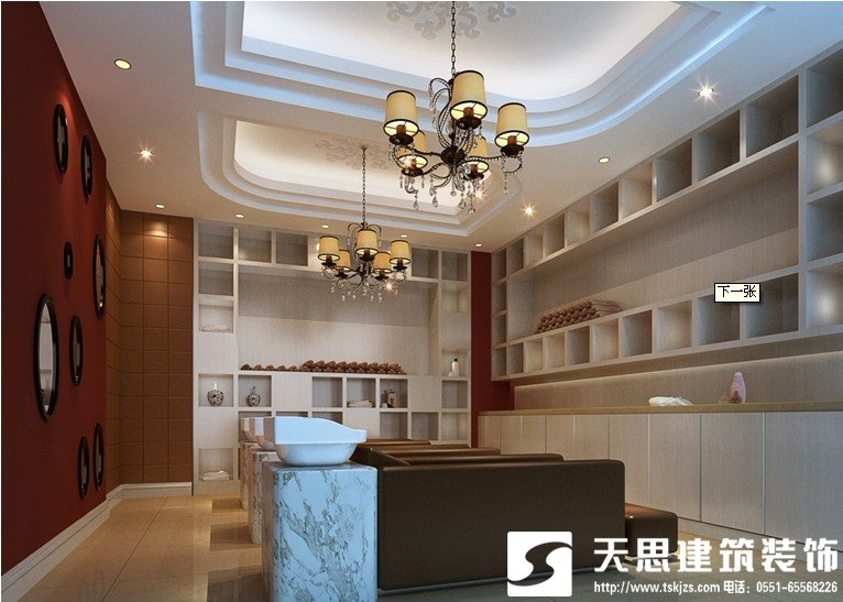 一般占整個(gè)店面面積的四分之三或三分之二不等(根據(jù)情況),操作區(qū)是直接服務(wù)顧客的地方,要求以寬松、干凈、舒適為宜,還要考慮到顧客方便、暢通。音樂一定用中貝音調(diào)播放,優(yōu)雅的古典名曲為佳。鏡子要明亮,椅子、床鋪要精美,外形要獨(dú)特,色調(diào)要統(tǒng)一。