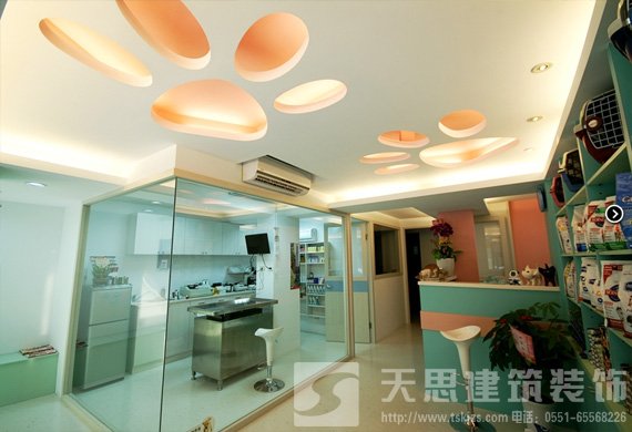 根據(jù)兒童醫(yī)院裝修的經(jīng)驗(yàn)和實(shí)例,我們可以選擇整體性較強(qiáng),能滿足圖案裝飾設(shè)計(jì)要求的裝修材料,如安全消毒板。首先通過噴繪制成各種動畫圖案的裝飾襯紙,再用專用膠水將印有圖案的裝飾襯紙與安全消毒板緊緊粘合構(gòu)成一個(gè)材料整體,最后再移植于墻面,這樣集立體感與裝飾美感于一體的整體動畫圖案就呈現(xiàn)在人們眼前,具有兒童個(gè)性特征的醫(yī)院主題也就得到很好的彰顯。