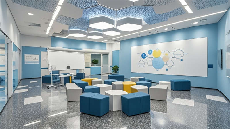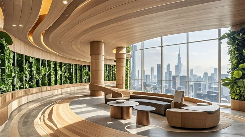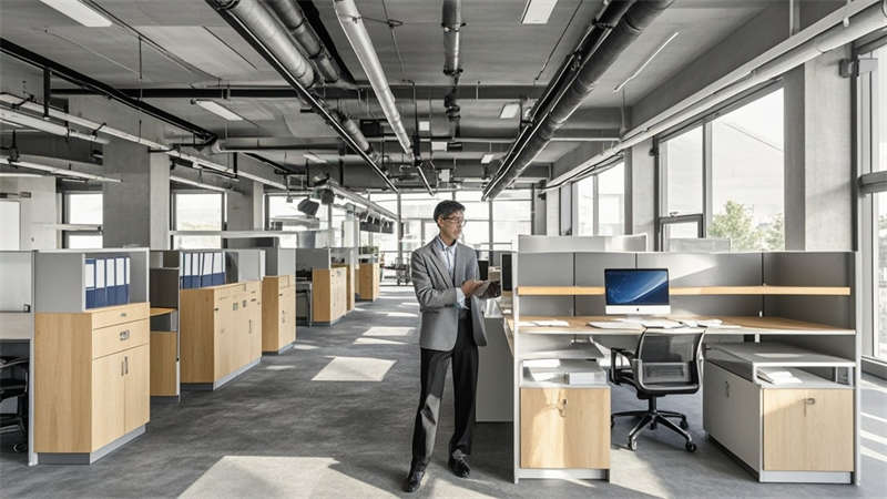 本1500㎡現(xiàn)代簡約辦公室設(shè)計以'高效協(xié)作·人文關(guān)懷'為核心,采用模塊化空間布局提升使用彈性。主色調(diào)選用淺灰、白、木三色系,局部點綴企業(yè)深藍色強化品牌認知。開放式辦公區(qū)采用1.2m×1.8m標準工位模塊,通過玻璃隔斷實現(xiàn)90%自然光滲透率。智能照明系統(tǒng)根據(jù)日照強度自動調(diào)節(jié)色溫,全年節(jié)電率達35%。核心筒改造區(qū)運用曲面木飾面弱化建筑結(jié)構(gòu),形成自然交流節(jié)點。聲學設(shè)計方面,蜂窩吸音板(NRC 0.85)與隔音艙(STC 52)組合控制噪音污染。茶水區(qū)采用磁吸軌道插座系統(tǒng),支持設(shè)備靈活接入。所有家具均符合WELL建筑標準,辦公椅配備6向調(diào)節(jié)功能。通過BIM技術(shù)實現(xiàn)管線綜合,保留3.2米凈高營造開闊感。