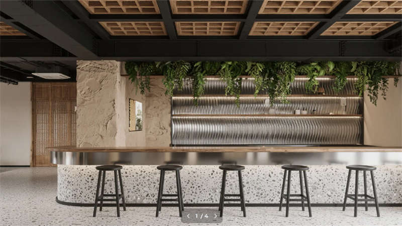 新中式工業(yè)風(fēng)骨架支撐起詩意場景,智能光療系統(tǒng)與磁吸供電科技隱于無形。云會議艙的煙雨江南數(shù)字畫卷,與夯土吧臺的粗糲質(zhì)感形成時空回響。這里不僅是效率容器,更是滋養(yǎng)人文精神的山川微縮劇場,在機械理性中重建天人合一的當代范本。