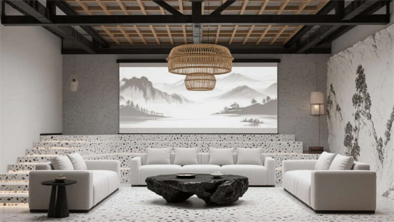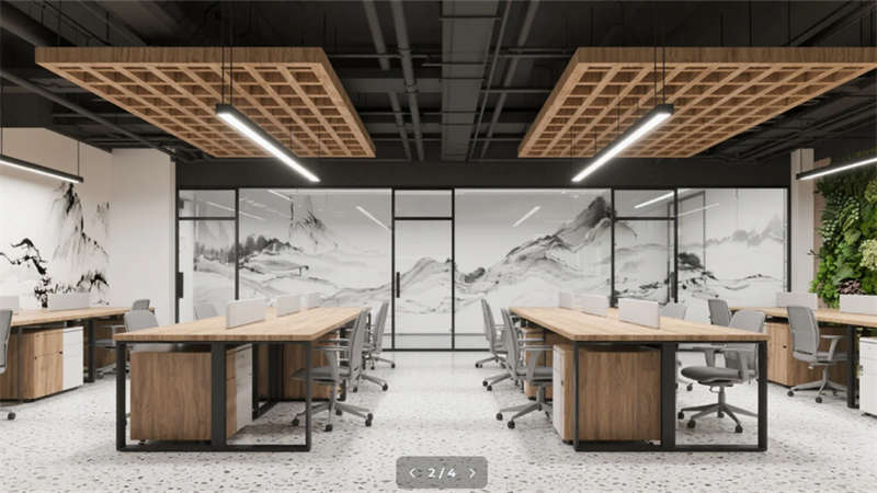 空間脈絡(luò)延續(xù)山水哲學(xué)——開放式辦公區(qū)的水墨玻璃隔斷營造朦朧畫境,創(chuàng)想實驗室可書寫墻面激發(fā)思維奔流。協(xié)作沙龍區(qū)的階梯布局與動態(tài)山水投影,催化靈感迸發(fā)的化學(xué)反應(yīng)。靜思艙藏身綠植墻中,為深度思考保留秘境。