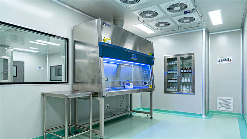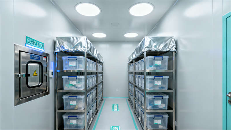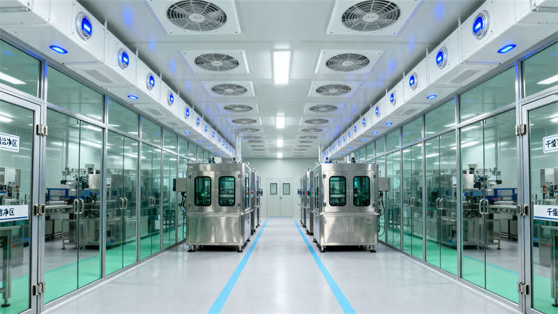 室內(nèi)空間劃分清晰,入口風淋室作為潔凈第一道防線,搭配專屬衣柜區(qū),助力人員規(guī)范進入;核心生產(chǎn)區(qū)以通透玻璃隔斷劃分,搭配高效過濾設備,營造潔凈通透的操作環(huán)境,操作人員身著專業(yè)潔凈服,盡顯規(guī)范作業(yè)氛圍。輔助區(qū)域同樣注重細節(jié),物料暫存間采用防塵物料架與傳遞窗設計,確保物料潔凈存儲與轉運;無菌實驗室配置專業(yè)安全柜與試劑柜,滿足高潔凈等級操作需求;潔凈走廊通過清晰標識引導動線,連接各功能區(qū)域,提升空間流轉效率;空調機房作為動力核心,設備布局規(guī)整,保障整體潔凈系統(tǒng)穩(wěn)定運行。?