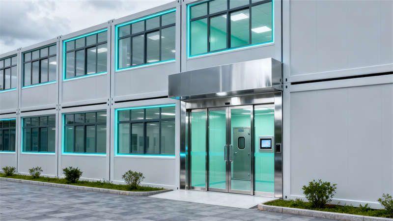 本設計以潔凈需求為核心,兼顧功能實用性與空間協(xié)調性,打造適配多場景的無塵環(huán)境。外觀上,建筑主體采用簡潔的淺灰色調,搭配密封性能優(yōu)良的玻璃外窗與感應式自動門,既凸顯工業(yè)質感,又從源頭減少外界污染侵入。?
