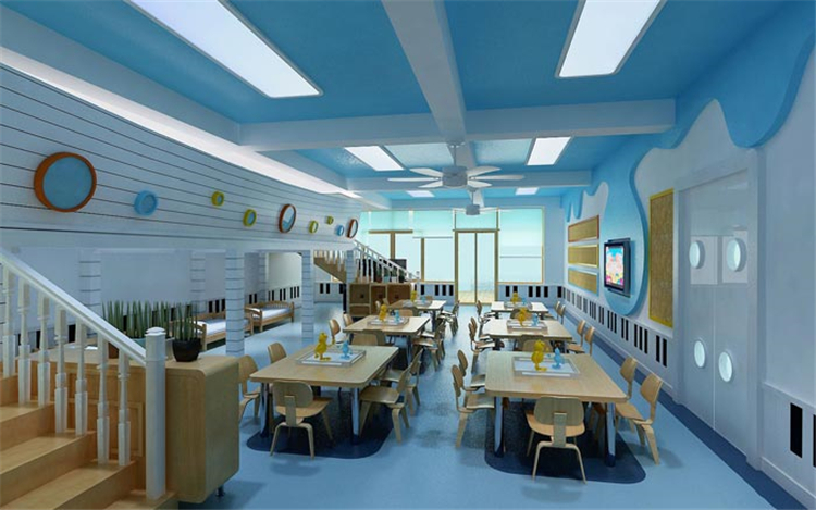 就餐區(qū)的設(shè)計(jì):在這里孩子們將會(huì)享受到美味的佳肴,一個(gè)班級(jí)的孩子們坐在一起用餐,可以培養(yǎng)彼此之間的默契,在就餐結(jié)束之后,孩子們可以幫忙收拾餐具,這是要培養(yǎng)孩子動(dòng)手的能力,在一切都結(jié)束之后,孩子們可以坐在一起看自己喜歡的動(dòng)畫片。