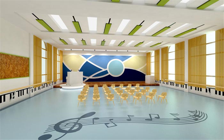 表演區(qū)域的設(shè)計(jì):這是最后一個(gè)音樂教室,但是這個(gè)教室在屬性上與前兩個(gè)稍有不同,在滿足音樂教室的同時(shí),也滿足表演的需求,設(shè)計(jì)師希望每一個(gè)孩子都是一個(gè)表演家,在臺(tái)上可以盡情的表演,培養(yǎng)每一個(gè)孩子表演、演講的能力。