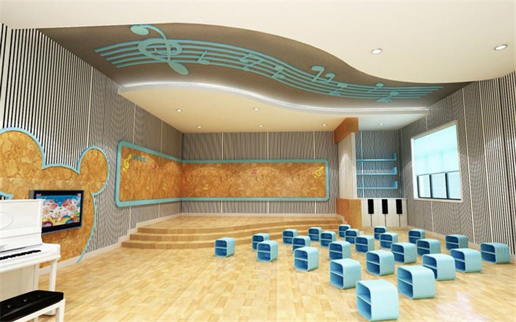 音樂教室的設(shè)計(jì):這里大致可以容納下30多個(gè)小朋友,也就是大概一個(gè)班多一點(diǎn)點(diǎn),能歌善舞是每個(gè)家長(zhǎng)對(duì)于孩子的特殊期望,對(duì)于孩子本身來(lái)說(shuō)也是一個(gè)不可不得的技能,在設(shè)計(jì)師看來(lái)若是引導(dǎo)得當(dāng),讓孩子喜歡唱歌、跳舞也不失為一件功德無(wú)量的事情。