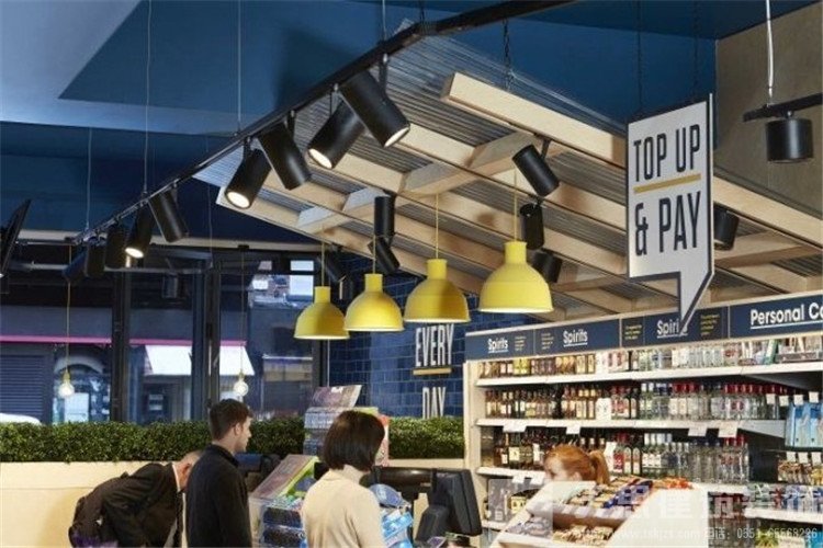 明黃色的吊燈、深藍(lán)色的瓷磚墻面、黑白格子相間的地磚搭配原木質(zhì)感的家具與貨架,這些元素組合在一起想要傳遞的都是同一個(gè)聲音,那就是"溫馨"與"新鮮",用Household 的話說(shuō),就是"這里所有販?zhǔn)鄣男迈r食品都已經(jīng)做好了充分準(zhǔn)備等你來(lái)享用".