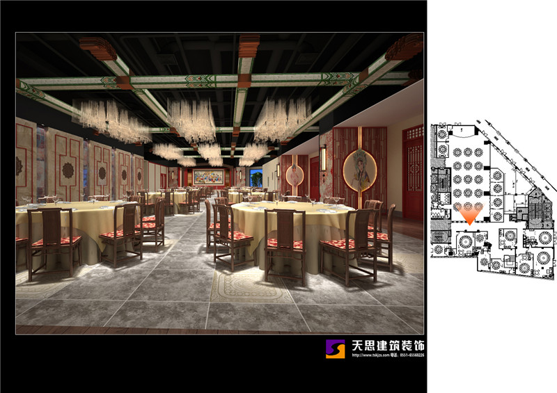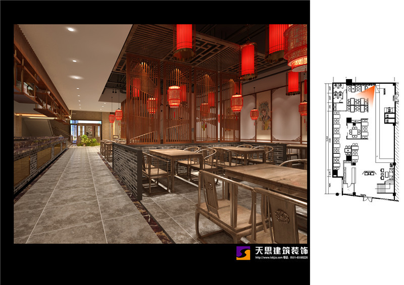 夢徽州酒店四樓火鍋店設(shè)計(jì)效果