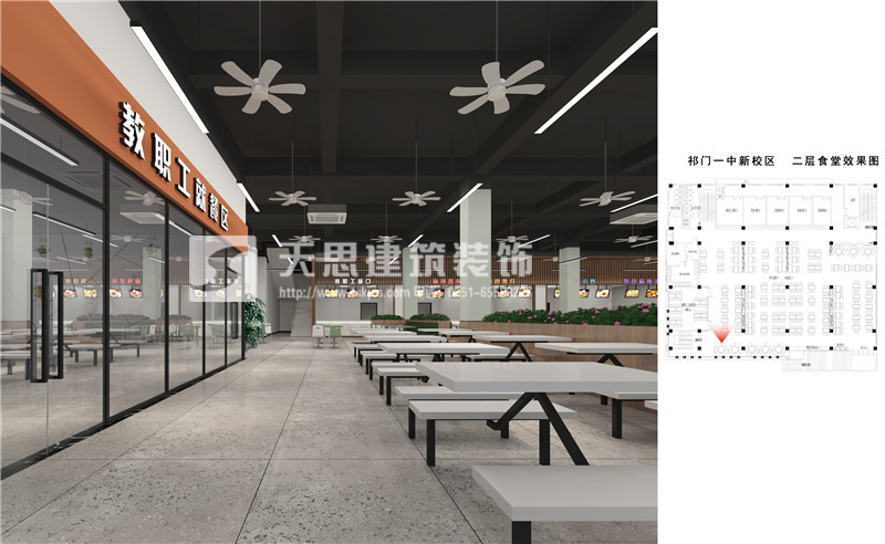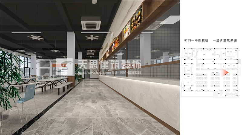 安徽天思專業(yè)專業(yè)提供餐廳設(shè)計(jì),食堂裝修施工服務(wù),質(zhì)量有保障。以下為祁門一中食堂設(shè)計(jì)效果圖,請(qǐng)您欣賞。如果您有相關(guān)需求請(qǐng)及時(shí)與我們聯(lián)系。