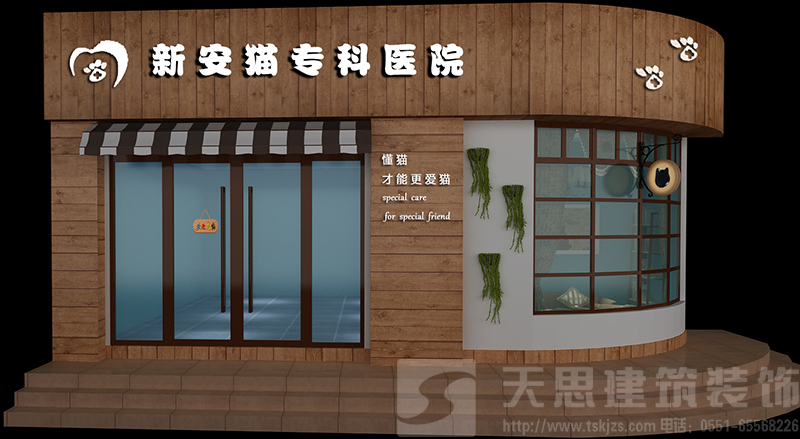 工程名稱:貓科醫(yī)院 設(shè)計(jì)師:葉曉麗 面積:150平米 項(xiàng)目地址:廬陽(yáng)區(qū)北一環(huán)沿河路 設(shè)計(jì)簡(jiǎn)介:新安貓科醫(yī)院是一家專業(yè)為寵物貓?zhí)峁┽t(yī)療、護(hù)理以及美容的醫(yī)院。門(mén)頭設(shè)計(jì)