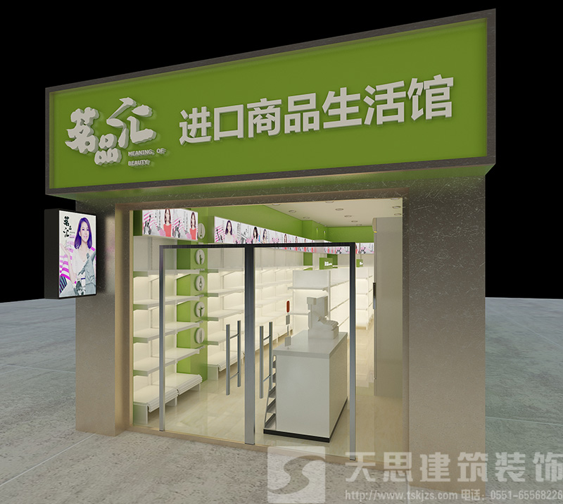 項(xiàng)目名稱:茗品匯進(jìn)口商品生活館 設(shè)計(jì)師:汪袁 面積:40平米 項(xiàng)目地址:包河區(qū)海關(guān)路 設(shè)計(jì)簡(jiǎn)介:進(jìn)口商品生活館門(mén)頭刷上清新的綠色乳膠漆,鑲嵌白色發(fā)光體