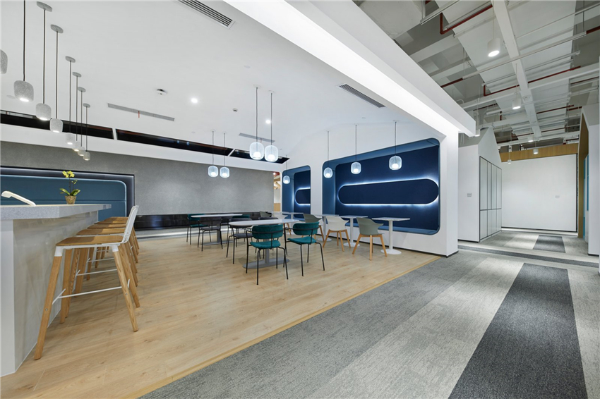 放射狀燈帶延續(xù)至空間四周極具視覺(jué)沖擊力,動(dòng)靜結(jié)合、張弛有度,傳達(dá)著空間的動(dòng)感和大氣。也強(qiáng)烈釋放著研發(fā)企業(yè)自信的特質(zhì)。
