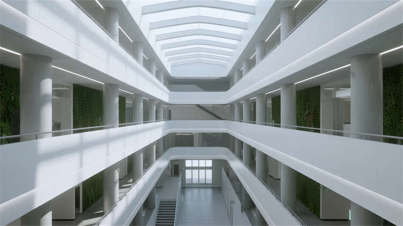 這座生物制藥創(chuàng)新基地以模塊化設(shè)計與綠色生態(tài)為核心,將科研、生產(chǎn)、生活空間有機(jī)整合。建筑采用現(xiàn)代簡約語言,通過玻璃、金屬與自然元素的碰撞,傳遞科技與人文的平衡。室內(nèi)空間注重功能性與舒適度,實驗室與車間遵循高效流線,而休閑區(qū)與屋頂花園則為員工提供親近自然的場所。園區(qū)夜景通過光影設(shè)計展現(xiàn)生物醫(yī)藥行業(yè)的未來感,同時屋頂太陽能板與雨水回收系統(tǒng)呼應(yīng)低碳目標(biāo)。整體設(shè)計既滿足尖端制藥工藝需求,亦成為合肥科技創(chuàng)新形象的標(biāo)志性載體。