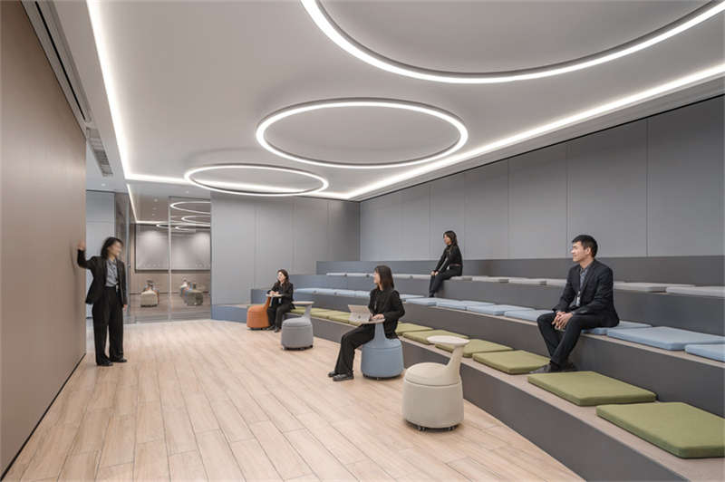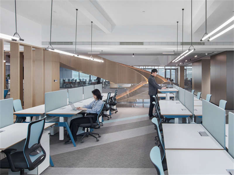 回望中庭,樓梯宛若一座沐浴在陽光下的“游廊”,可開啟天窗為所有樓層的員工提供充足的陽光和新鮮空氣,在工作間隙讓頭腦徹底放松,中庭也成為企業(yè)的標(biāo)志性的身份特征。
