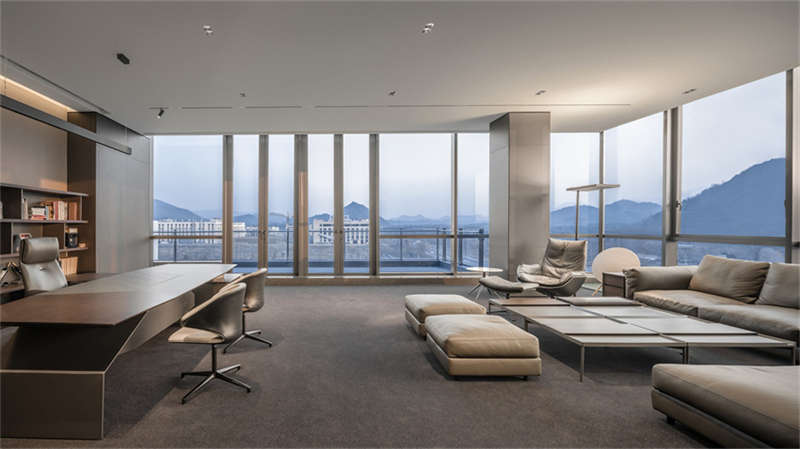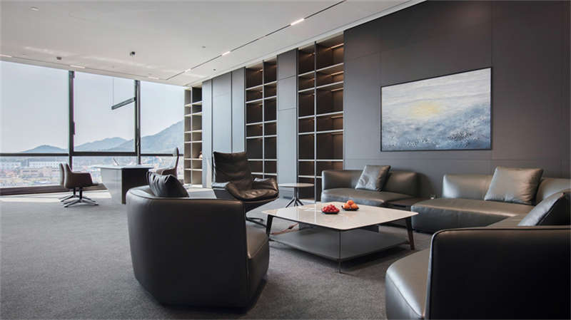 行至六樓行政層,整體風(fēng)格變得商務(wù)穩(wěn)重,彰顯現(xiàn)代商務(wù)總裁氣息,展現(xiàn)了多種不同性格的總裁辦公空間。