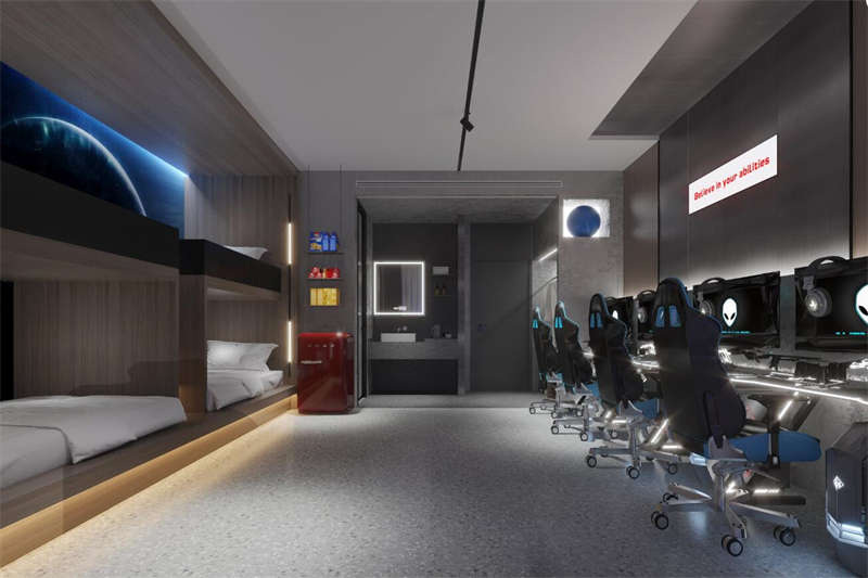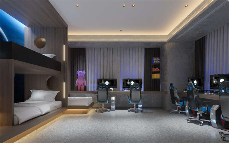 相信很多電競酒店投資人在籌備設(shè)計時,都會思索如何將電競元素和入住體驗完美融合。一方面需考慮符合電競愛好者審美,增加潮酷元素;另一方面則需考慮睡眠質(zhì)量,減少炫目元素。