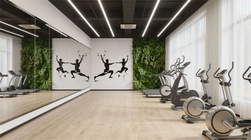 健身區(qū)與會(huì)議室平衡功能與美學(xué),金屬器械融入水墨肌理,會(huì)議長桌呼應(yīng)胡桃木的溫潤質(zhì)感。整體設(shè)計(jì)弱化邊界,讓光、影、材質(zhì)在流動(dòng)中對(duì)話,為合肥注入一處隱于城市的東方精神綠洲。