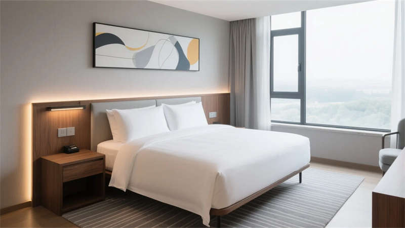 藝術(shù)品陳列成為空間的精神錨點(diǎn)。大堂抽象金屬裝置隱喻合肥科技創(chuàng)新基因,客房手作陶器呼應(yīng)本地文化脈絡(luò),電梯廳的石材拼畫(huà)以當(dāng)代語(yǔ)言解構(gòu)傳統(tǒng)山水意境。這些藝術(shù)介入并非孤立裝飾,而是與建筑結(jié)構(gòu)、功能流線深度交融。