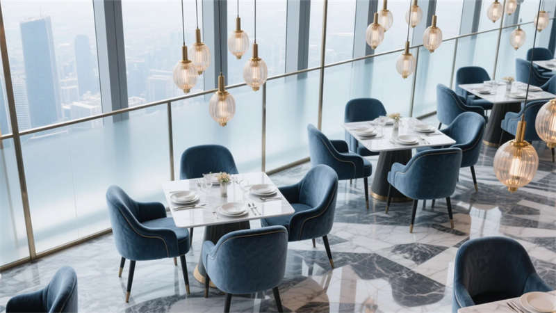 空間敘事聚焦于質感細節(jié):皮革與絨面織物溫柔包裹休憩區(qū)域,定制吊燈灑落琥珀光暈,抽象藝術畫作點綴留白墻面。從高空餐廳的云端食趣到套房浴室的蒸汽氤氳,從大堂茶歇的咖啡香氣到泳池區(qū)的波光瀲滟,設計以人性化尺度打造多重感官體驗。
