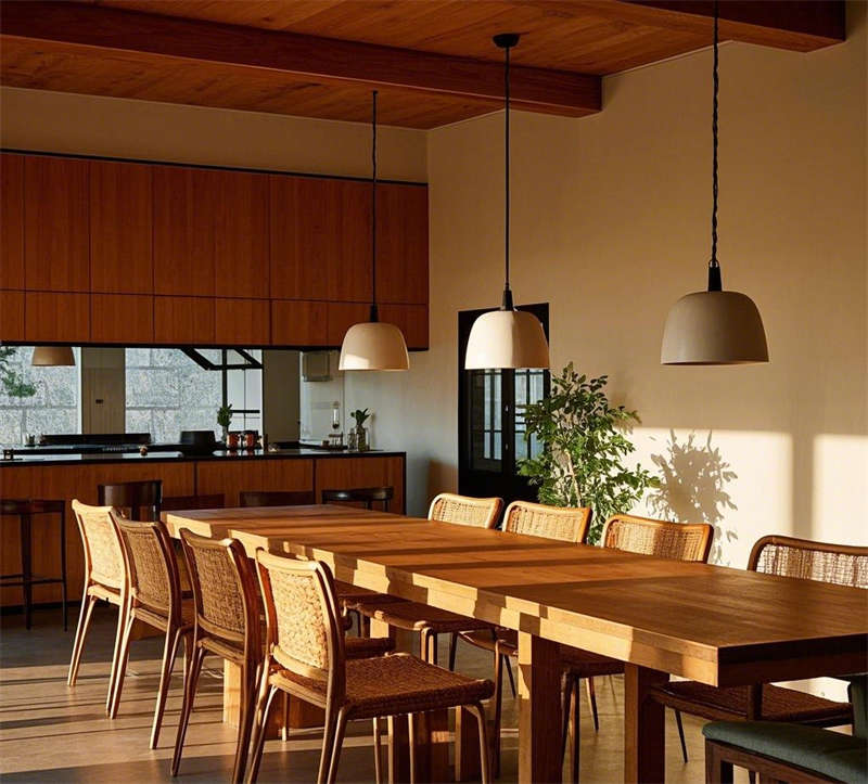 這套1000平民宿設計以自然簡約風格為核心,營造出溫暖舒適、貼近自然的居住體驗。整體空間以原木色調(diào)為主,搭配米白色、淺灰等柔和色彩,輔以綠植點綴,呈現(xiàn)出清新自然的氛圍。大堂以原木色前臺和藤編吊燈為亮點,搭配落地窗引入充足光線,營造出溫馨的迎賓空間??蛷d采用開放式布局,原木地板與編織地毯相得益彰,搭配圓形茶幾和落地燈,打造出輕松愜意的休閑區(qū)域。餐廳延續(xù)自然風格,長桌與藤編餐椅的組合簡潔大方,開放式廚房與吧臺的設計增強了空間的互動性。臥室分為兩種風格,一種以藤編床頭和棉麻床品為主,營造出舒適的睡眠環(huán)境;另一種采用日式榻榻米設計,搭配推拉門和竹林景觀,傳遞出寧靜禪意的氛圍。浴室同樣注重自然元素的運用,圓形浴缸與綠植的結合讓人仿佛置身于自然之中,而日式風格的浴室則通過竹制裝飾和庭院景觀,進一步強化了寧靜放松的體驗。戶外庭院以石板小路和木質(zhì)平臺為主,搭配休閑桌椅和綠植環(huán)繞,為客人提供了一個親近自然的戶外休閑空間。整體設計注重材質(zhì)與光影的運用,將自然元素與現(xiàn)代簡約風格完美融合,打造出一個舒適、放松的民宿空間。