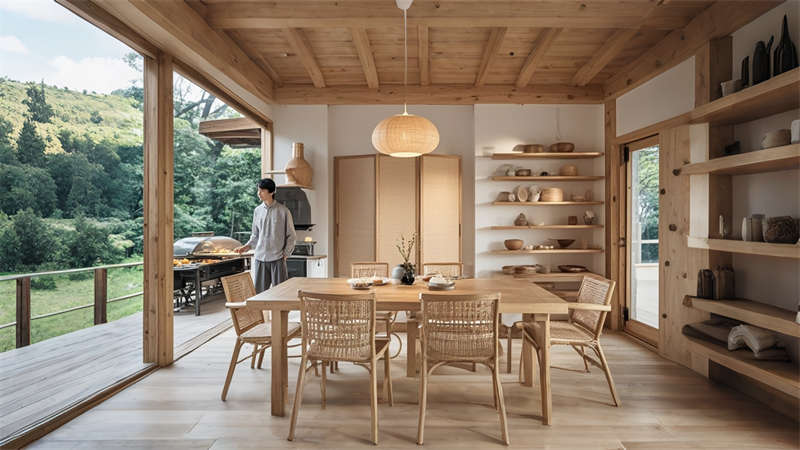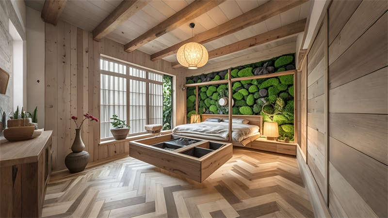 本 1500 平民宿設計以 ' 在地重生 ' 為核心理念,采用現(xiàn)代自然主義手法重構傳統(tǒng)民居。空間規(guī)劃上保留原始建筑格局,設置12間主題客房與6大公共功能區(qū)。色彩體系以米白、淺灰為基底,點綴墨綠、陶土等大地色系。材料選用夯土、回收老木、亞麻等環(huán)保材質(zhì),搭配智能化隱蔽工程。