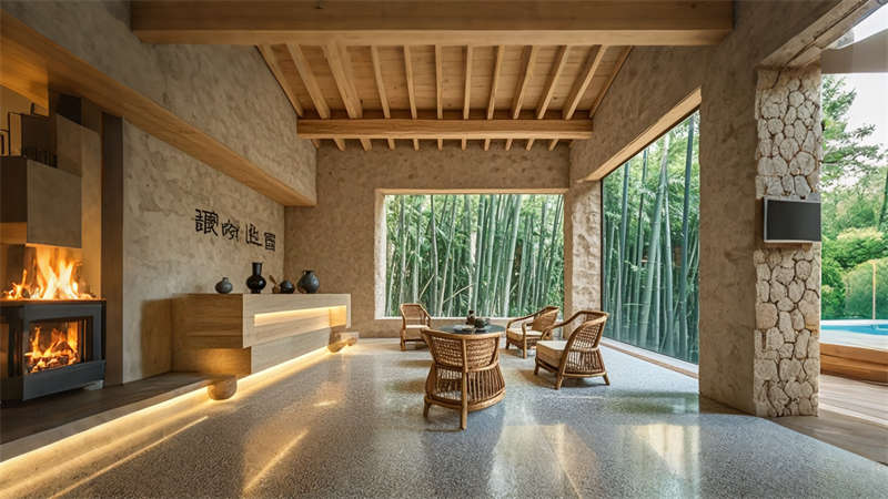 某江淮水岸民宿以“水系文明”為線索,入口設置霧幕投影再現(xiàn)淝河古渡,走廊地面鑲嵌歷代治水銘文玻璃磚,頂層露臺通過光影秀演繹巢湖流域生態(tài)變遷,形成沉浸式文化長廊。