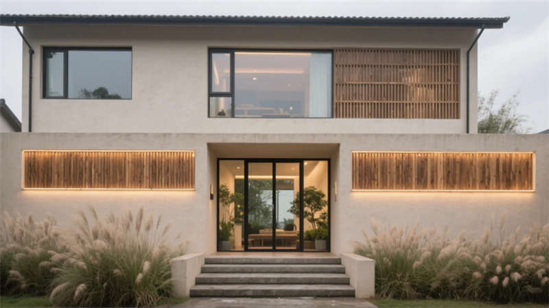 本案以“現(xiàn)代自然主義”為核心理念,將合肥山水肌理與當(dāng)代設(shè)計語言交融,打造一座會呼吸的城市棲居地。建筑外立面以淺米色微水泥為基底,橫向原木格柵與嵌入式線性光帶勾勒出簡約輪廓,入口矮蒲葦隨風(fēng)輕搖,模糊室內(nèi)外界限。