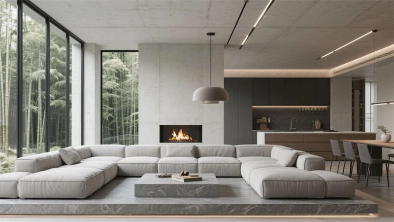 空間敘事聚焦材質(zhì)本真:微水泥地面延伸視覺縱深,懸浮式家具營造失重趣味,線性光帶引導(dǎo)行為動線。功能分區(qū)借由光影游戲自然過渡,下沉客廳銜接無界餐廚,榻榻米臥室推窗即見苔蘚庭院,頂樓露臺用透明邊界消融城市天際線。