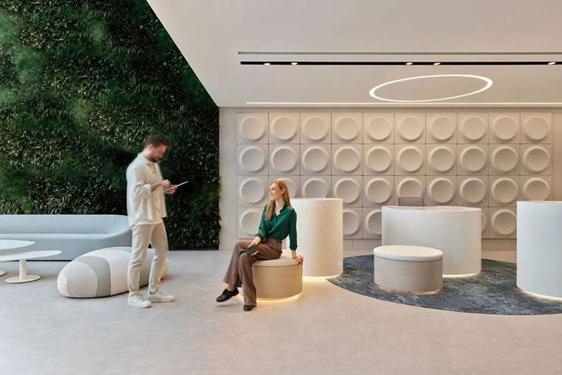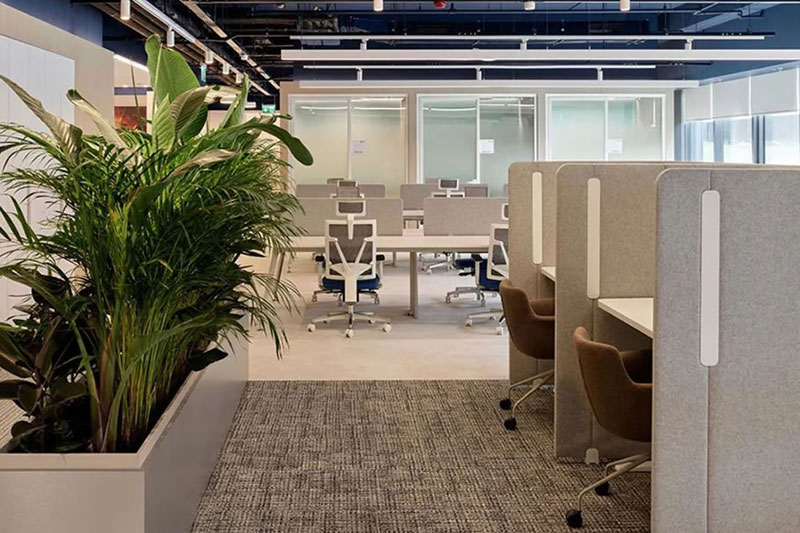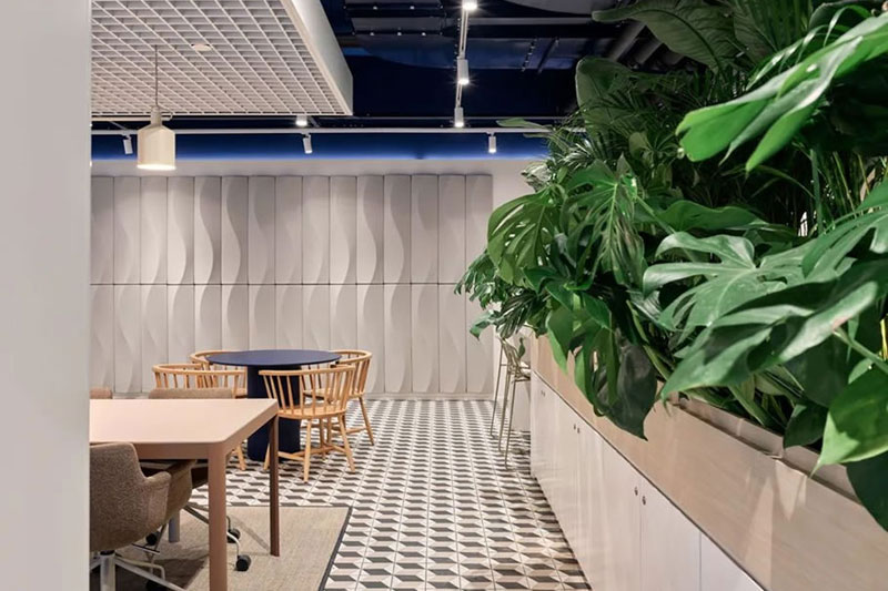 開放協(xié)作、動(dòng)靜相容、靈活多元(寧?kù)o的工作區(qū)、舒適的休閑區(qū)、開敞多元的社交區(qū)和協(xié)作區(qū)),建立在ABW基礎(chǔ)上的超強(qiáng)適應(yīng)性空間規(guī)劃支持人們多樣化的工作需求。簡(jiǎn)約溫馨的配色,加以韻律感的元素重復(fù)應(yīng)用,以及隨處可見的大量綠色植物,讓整個(gè)空間在恬靜溫婉中又洋溢著靈動(dòng)的韻致。