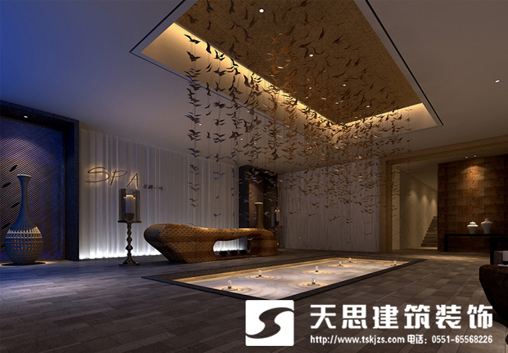 六安瀾庭養(yǎng)生會(huì)所采用簡(jiǎn)約現(xiàn)代風(fēng)格。養(yǎng)生會(huì)所大廳一座異形的藝術(shù)品,獨(dú)特時(shí)尚,一傾而泄的水晶燈,在荷花屏風(fēng)的映襯下,高貴自然,富有藝術(shù)感。洽談區(qū)、接待區(qū)的裝修設(shè)計(jì)沒有采用過多的裝飾,局部的深褐色吊頂以及墻體,突出了養(yǎng)生會(huì)所的獨(dú)特之道。整個(gè)養(yǎng)生會(huì)所的軟裝搭配也是恰到好處,體現(xiàn)了養(yǎng)生環(huán)保之意。裝修設(shè)計(jì)休閑自然,是放松娛樂的不錯(cuò)之選。
