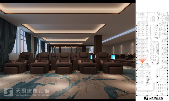 休息區(qū)設(shè)計(jì)選用舒適美觀的座椅,微弱燈光,以及縷空式門框設(shè)計(jì),在這樣的環(huán)境下顧客可以舒心放空自己,好好享受這靜怡的美好時(shí)光。