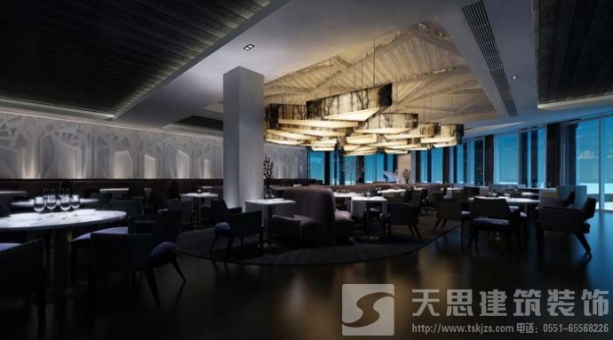 總設(shè)計(jì)說(shuō)明:本案集餐廳和酒吧于一體,主題為樹(shù)影婆娑,采用大量的直線(xiàn)和簡(jiǎn)單形體元素。給人的感覺(jué)是舒適、魅力、神秘、時(shí)尚、嫵媚。