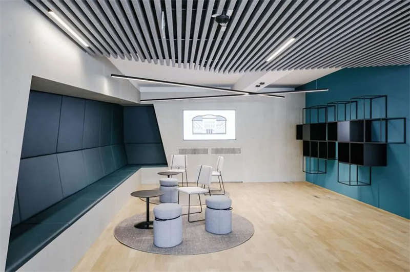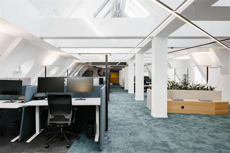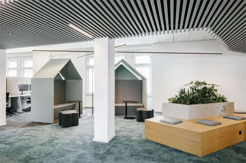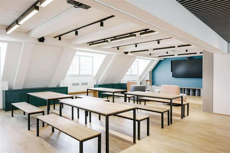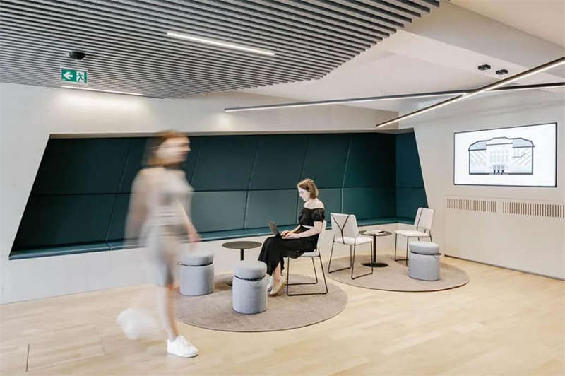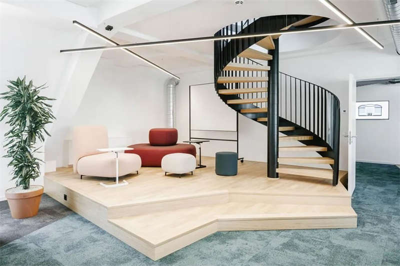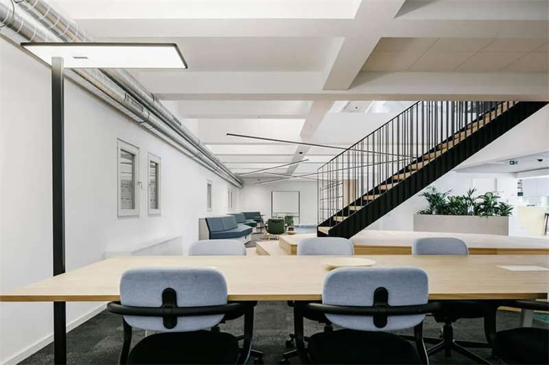 在與客戶的密切合作以及對方員工的積極參與下,設計師成功創(chuàng)建了一處精彩的工作空間,在這里,人們可以集中精力專注工作,也可以隨時隨地進行各種不同的協(xié)作、交流、互動和頭腦風暴。各種不同主題的廳廊空間、靈活多元的協(xié)作空間、以及巨大的屋頂露臺,讓這處空間變得獨一無二??臻g隨著人們的移動不斷變化著景觀視線和功能場景,豐富而精彩的設計讓這里步移景異,充滿驚喜和樂趣。