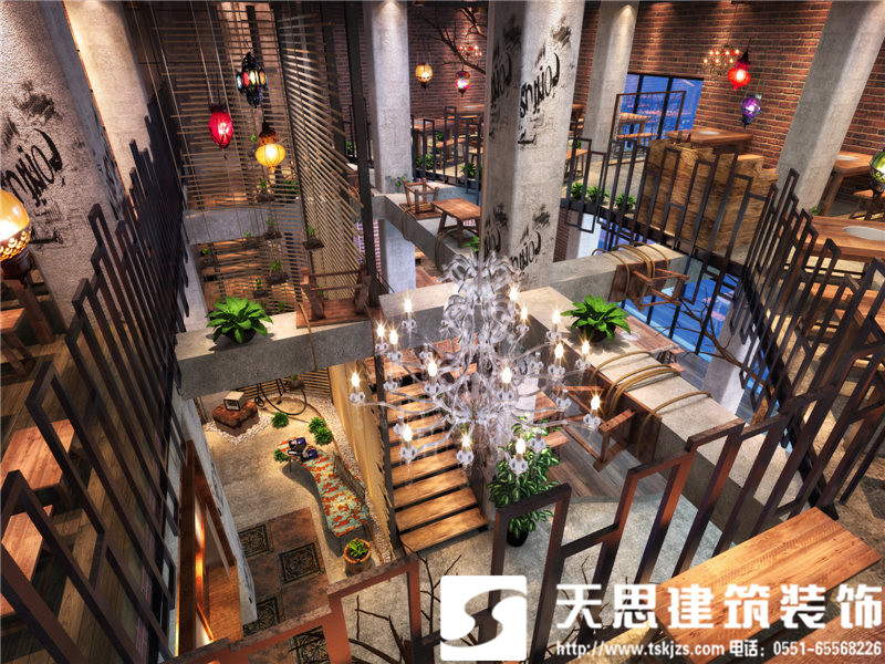 樓梯一角的別致風(fēng)景,雖材質(zhì)簡陋卻頗為入得人心。小板凳吧臺(tái)式火鍋店,在把握簡單大方的設(shè)計(jì)基礎(chǔ)上,巧用新穎造型和空間氛圍營造,打造出一個(gè)別具味道的火鍋店。