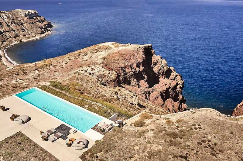 自然生態(tài)度假酒店坐落在圣托里尼島新月形狀的懸崖邊上,預(yù)計于今年5月初開放。在阿克羅蒂里古城附近,游客可以看到來自破火山口附近的碧藍(lán)海水和斑斕陡峭的熔巖層。這片建筑所帶來的與人類密切相關(guān)的體驗,進(jìn)一步點亮了周邊未經(jīng)雕琢的自然世界。復(fù)古飾品、大地色調(diào)和手工家具裝點了酒店的15間套房,筆直的線條、圣潔的白色與靈活的曲線等典型的圣托里尼建筑元素也在酒店中得以充分展現(xiàn)。在這里,人們可以盡享奢華的希臘式住宿,品嘗當(dāng)?shù)鼐虏穗龋惺軛趹已逻叺娜坝境?,在戶外社交中心參加各種有益身心的活動。