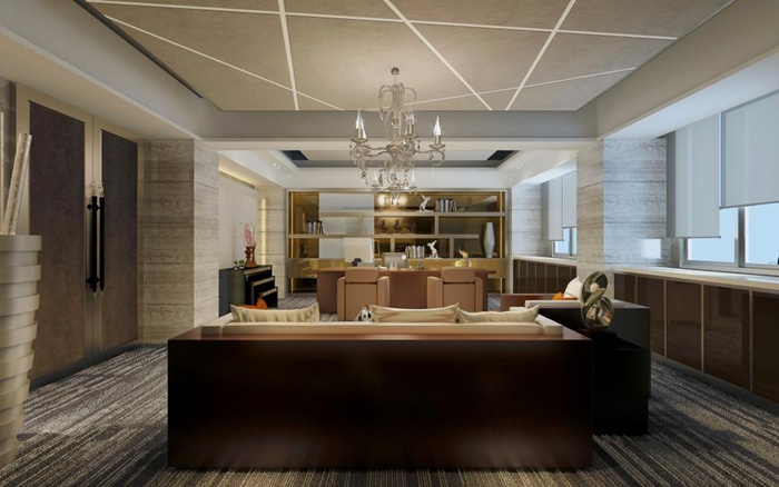 3、有質(zhì)感的辦公室設計:設計師通過簡化前臺裝飾元素來凸顯簡介的企業(yè)標識,讓綠植承載的環(huán)保元素更加醒目,同時也強調(diào)了企業(yè)的科技感。在設計前方接待區(qū)的時候,充分運用了自然色+燈光的組合來強化企業(yè)內(nèi)涵體驗。沙發(fā)、地毯、茶幾與落地燈在開放的空間里構建了一個心理上私密的會客區(qū)域,具有濃濃的現(xiàn)代科技氣息。將空間劃分為辦公區(qū)域、交流區(qū)域、展示區(qū)域,在設計師看來總經(jīng)理辦公室相當于一個小型的迷你辦公室,既要具備多重功能,又要做到空間內(nèi)部的辦公與配套系統(tǒng)的完整與契合。通過地毯、精選的辦公桌椅,并且結合不同區(qū)域燈光的變化讓辦公空間具有層次感。