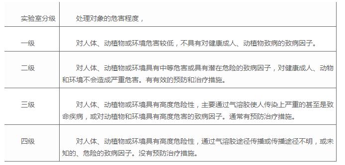 實(shí)驗(yàn)室工作人員在處理病原微生物、含有病原微生物的實(shí)驗(yàn)材料或寄生蟲時,為確保實(shí)驗(yàn)對象不對人和動植物造成生物危害,確保周圍環(huán)境不受其污染,對實(shí)驗(yàn)室和動物實(shí)驗(yàn)室的設(shè)計(jì)與建造都有特別的要求.