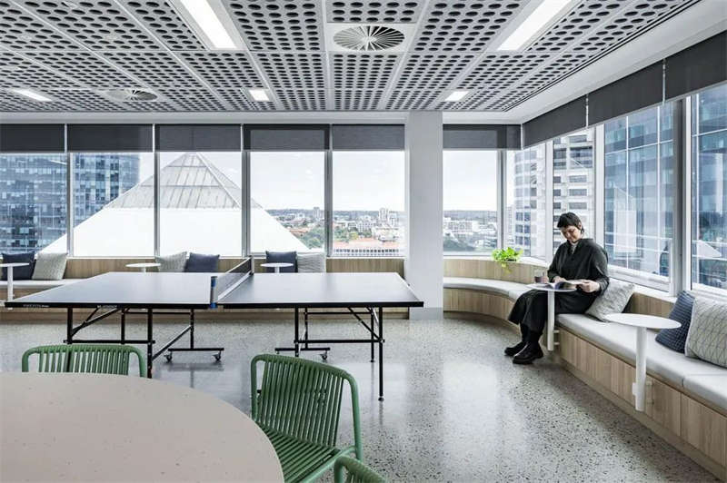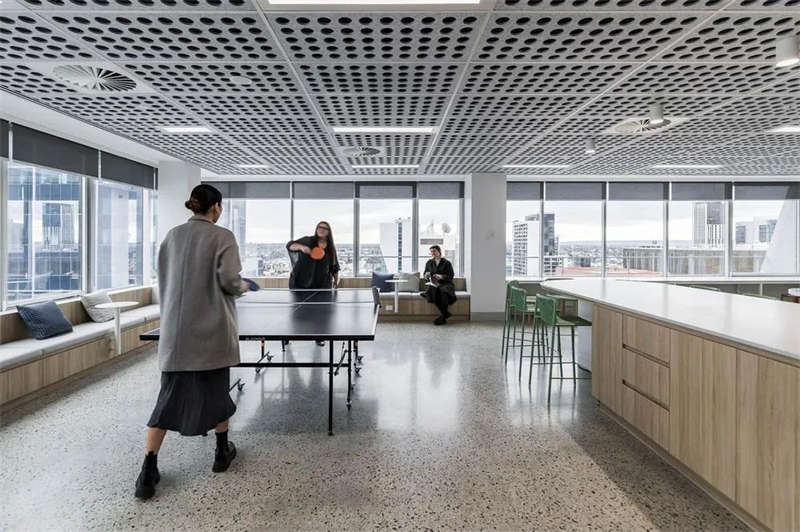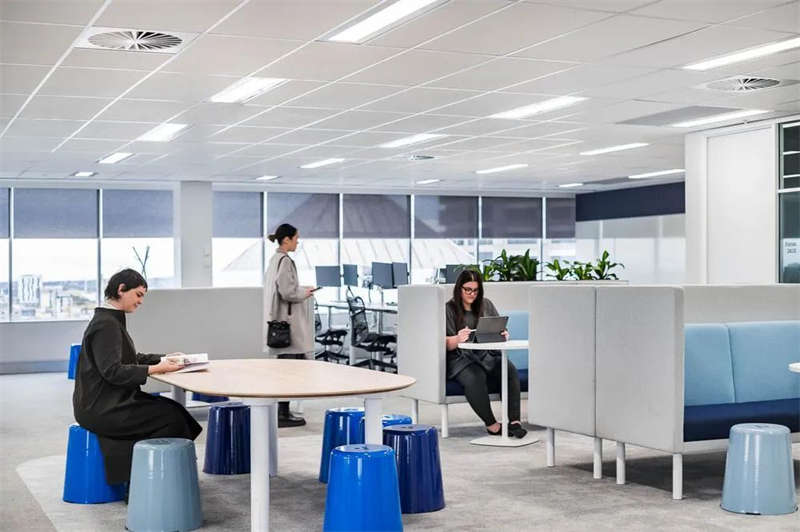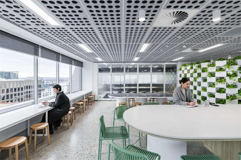 充足的自然光、豐富的材料板、舒適的工作站和吸引人的公共空間,所有這一切都有助于創(chuàng)建一個(gè)愉悅的工作環(huán)境,員工的互動(dòng)和高效生產(chǎn)力也隨之而來。一個(gè)以健康為驅(qū)動(dòng)力的環(huán)境設(shè)計(jì)可以吸引后疫情時(shí)代的人們重返工作場(chǎng)所。