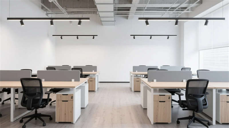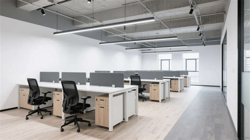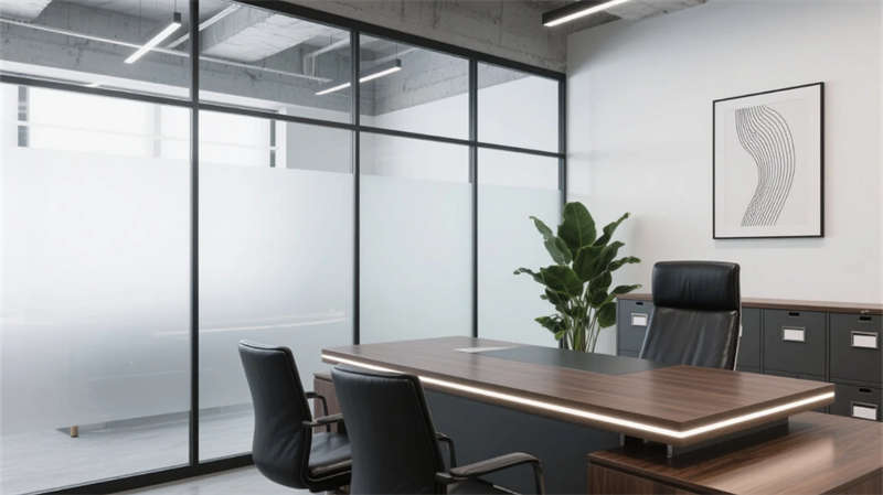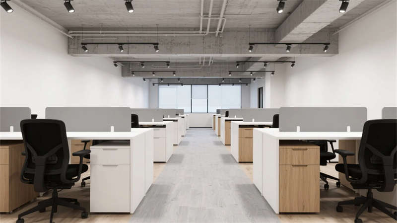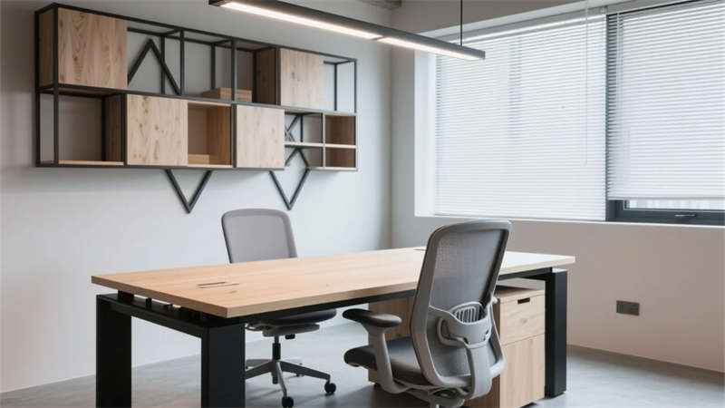 步入空間,現(xiàn)代簡(jiǎn)約工業(yè)風(fēng)以原始肌理與智能元素碰撞出獨(dú)特韻律。淺灰水泥與原木的基調(diào)貫穿始終,裸露結(jié)構(gòu)構(gòu)件與暖光線性照明形成張力,綠植垂直裝置在冷峻材質(zhì)中注入自然呼吸感。開放式辦公區(qū)模塊化桌椅靈活組合,落地窗引入天光,軌道射燈精準(zhǔn)聚焦高效場(chǎng)景;獨(dú)立辦公室的磨砂玻璃隔斷兼顧隱私與通透,深胡桃木桌面沉淀商務(wù)氣質(zhì)。