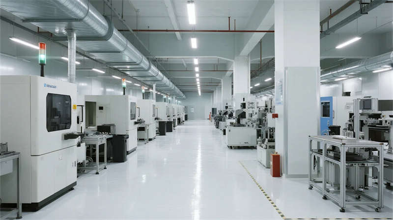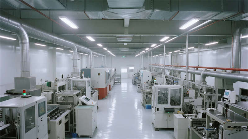 內(nèi)部空間延續(xù)"少即是多"哲學(xué):生產(chǎn)車間以銀白為主調(diào),設(shè)備管線規(guī)整排布于頂棚,環(huán)氧地坪反射線性燈光,營造科技感十足的無塵環(huán)境;辦公區(qū)突破傳統(tǒng)隔斷,玻璃幕墻引入外部景觀,綠植墻自然劃分區(qū)域,形成通透開放的協(xié)作場域。
